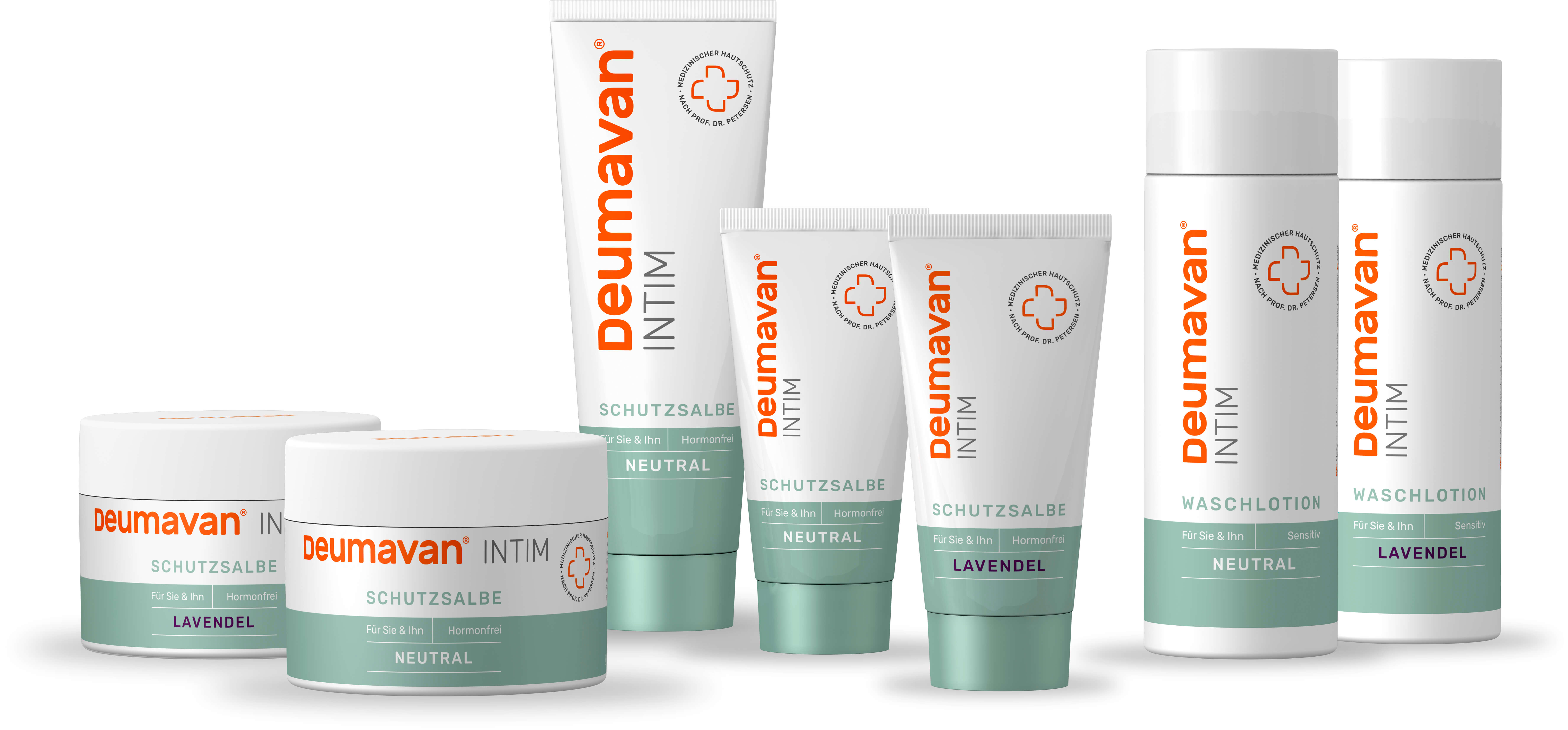 Mit einem dem Intimbereich angepassten pH-Wert von etwa 4,5 werden die Waschlotionen von Deumavan für die tägliche sanfte und rückfettende Reinigung des Intimbereichs angewendet. Die Intimrasur ist mittlerweile ein weiteres Anwendungsgebiet. Dank der cremigen Textur helfen die Kosmetika dabei, Verletzungen sowie Rasurpickel und Rasurbrand zu vermeiden. Erhältlich sind die Waschlotionen als neutrale Variante ohne Parfum sowie mit zartem Lavendelduft. Eine Ergänzung zur Reinigung bildet im Übrigen die Deumavan Schutzsalbe.